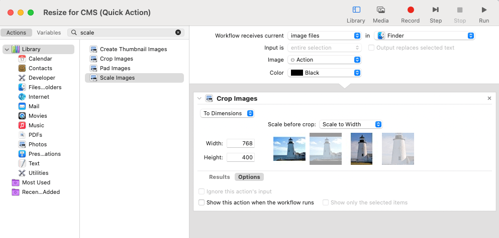 So instead, I asked Claude about the easiest ways to resize images, and it walked me through using Automator on the Mac to create a "Quick Action."